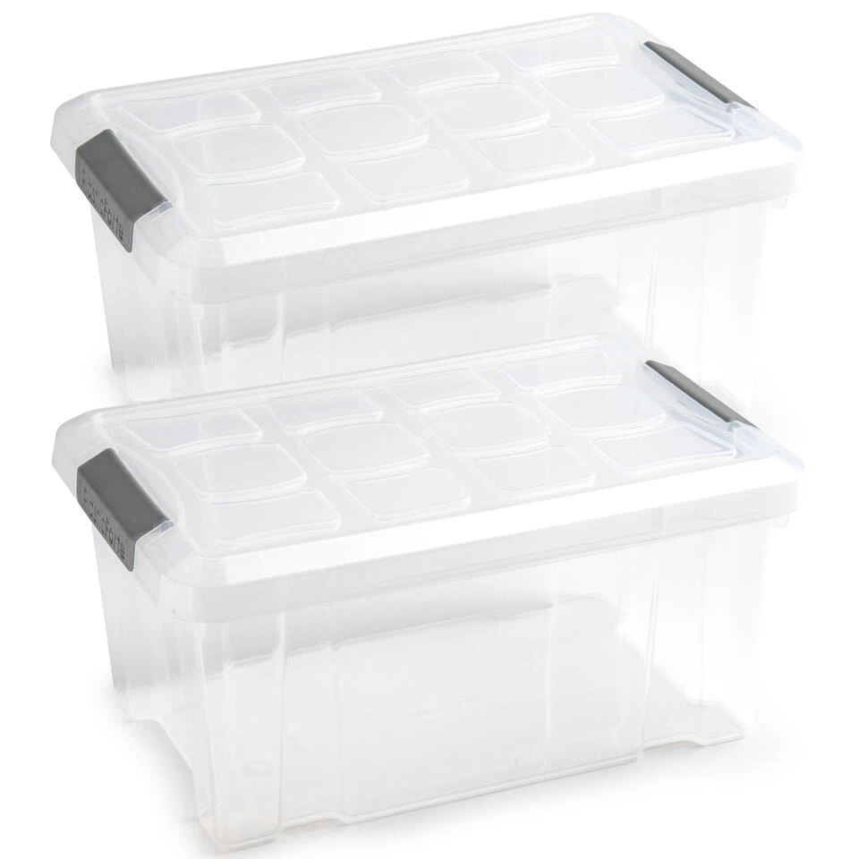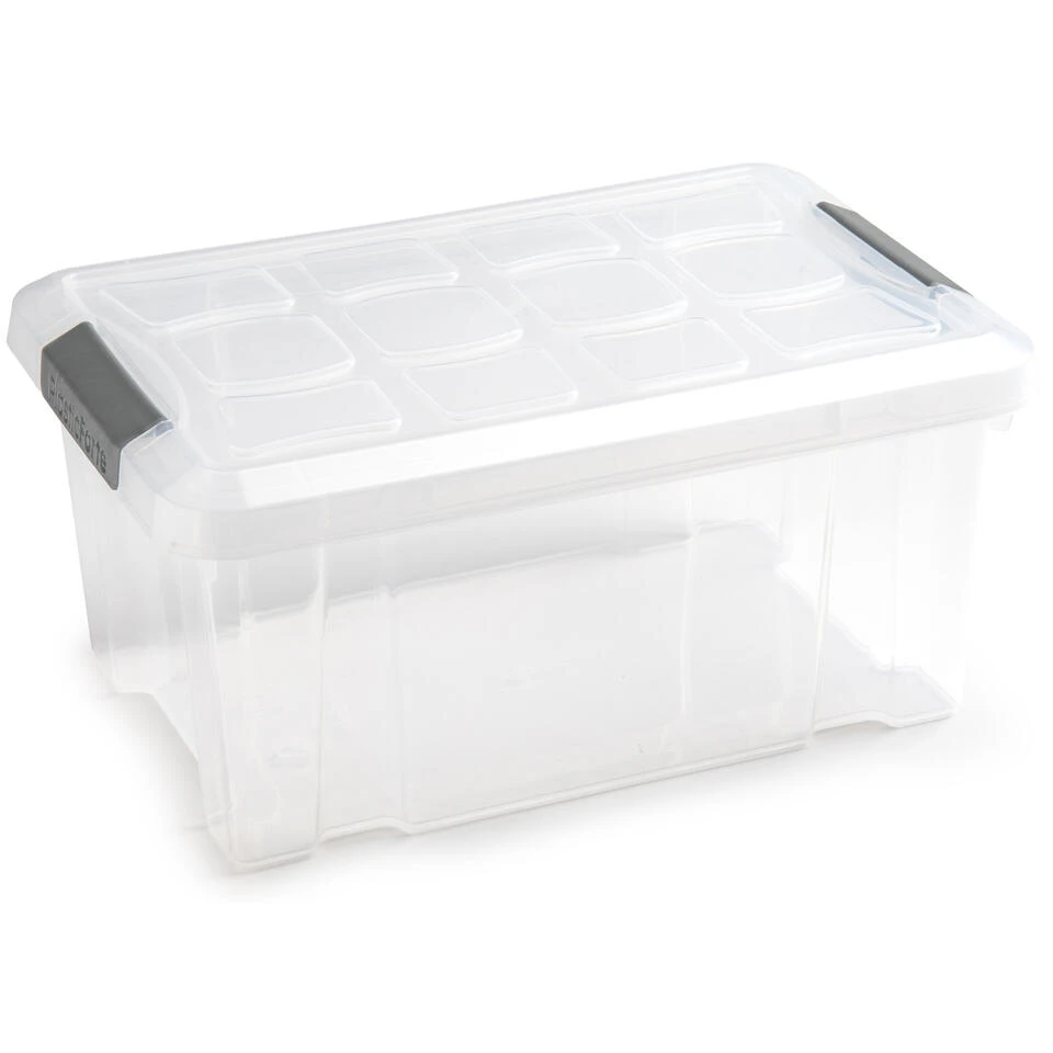 1x stuks Opslagbakken/organizers met deksel 5 liter 29 cm. Transparante opbergbakken met deksel welke is voorzien van grijze sluitclips. Handig voor het opbergen van spulletjes. Inhoud: ca. 5 liter. Formaat: 29 x 19 x 14 cm. Materiaal: kunststof (plastic).