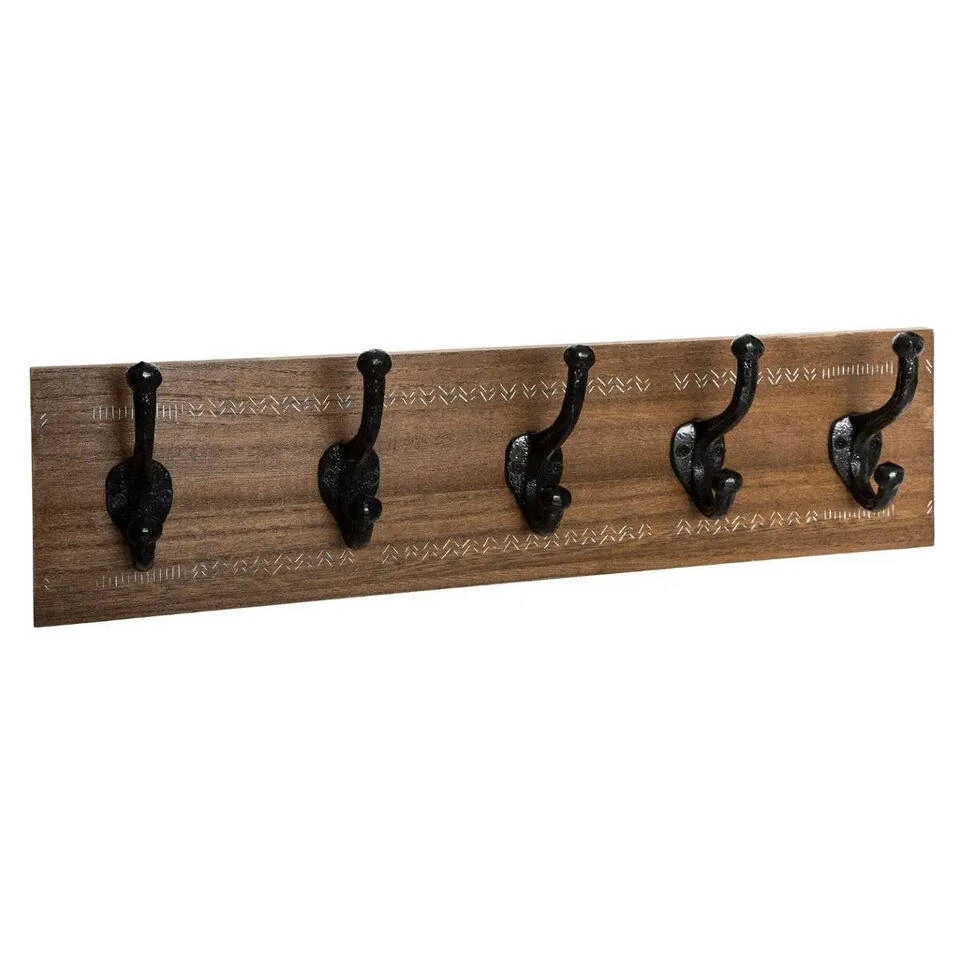5Five Kapstok – Kastanjebruin – 5haaks – MDF/ijzer – 50 X 8.5 X 14 Cm