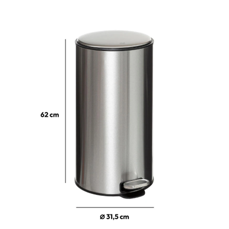 5Five Prullenbak/pedaalemmer – Zilver – Metaal – 30 Liter – 39 X 62 Cm