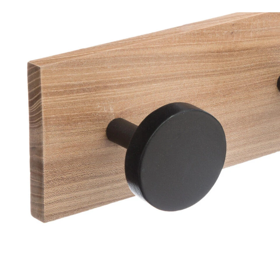 5Five kapstok rek voor aan de muur/wand in de kleur lichtbruin/zwart. Ideaal om je jassen en hoofddeksels aan op te hangen, dankzij de 4 ophanghaken/knoppen is er genoeg ruimte om diverse stukken op te hangen. Afmeting: 40 x 8 cm. Materiaal: MDF/ijzer. Wandkapstokken.