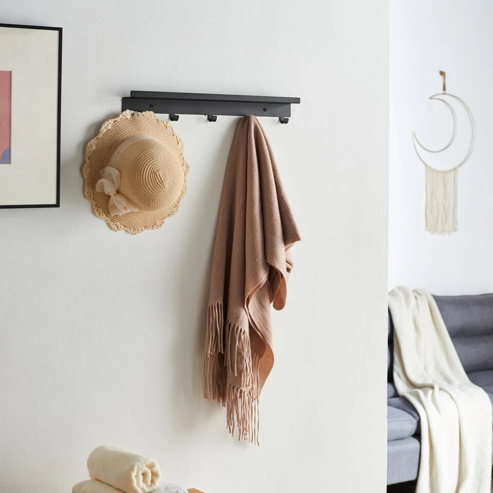 Zoek je een plaatsje voor jouw sleutelbos? Weet je niet waar je jouw keukenhanddoeken moet hangen? Heb je geen plaats voor jassen jouw hal? Deze wandkapstok van ACAZA biedt de oplossing. De 5 haken en het gootje bovenaan zorgen voor praktisch gebruiksgemak. De zwarte stalen afwerking geeft deze hangende kapstok een strak design.