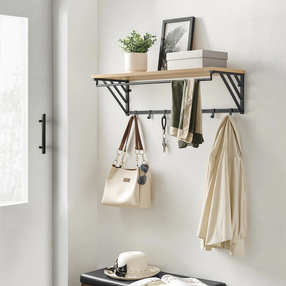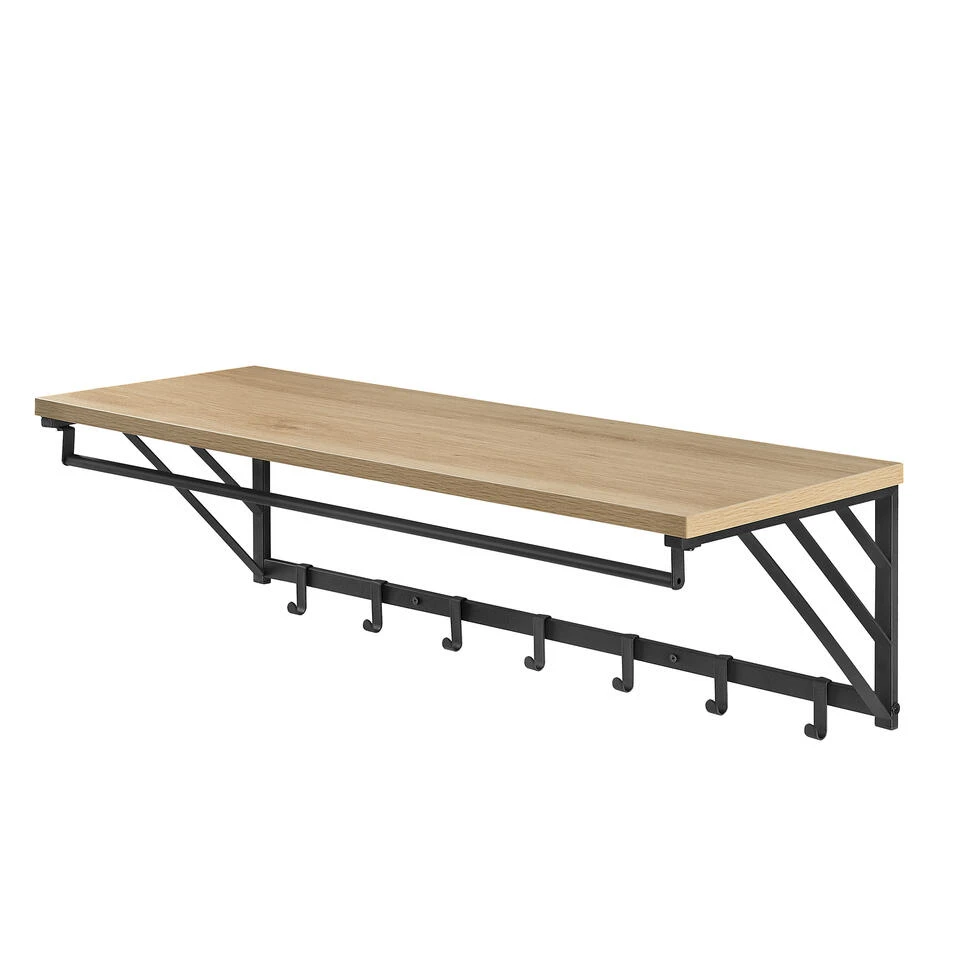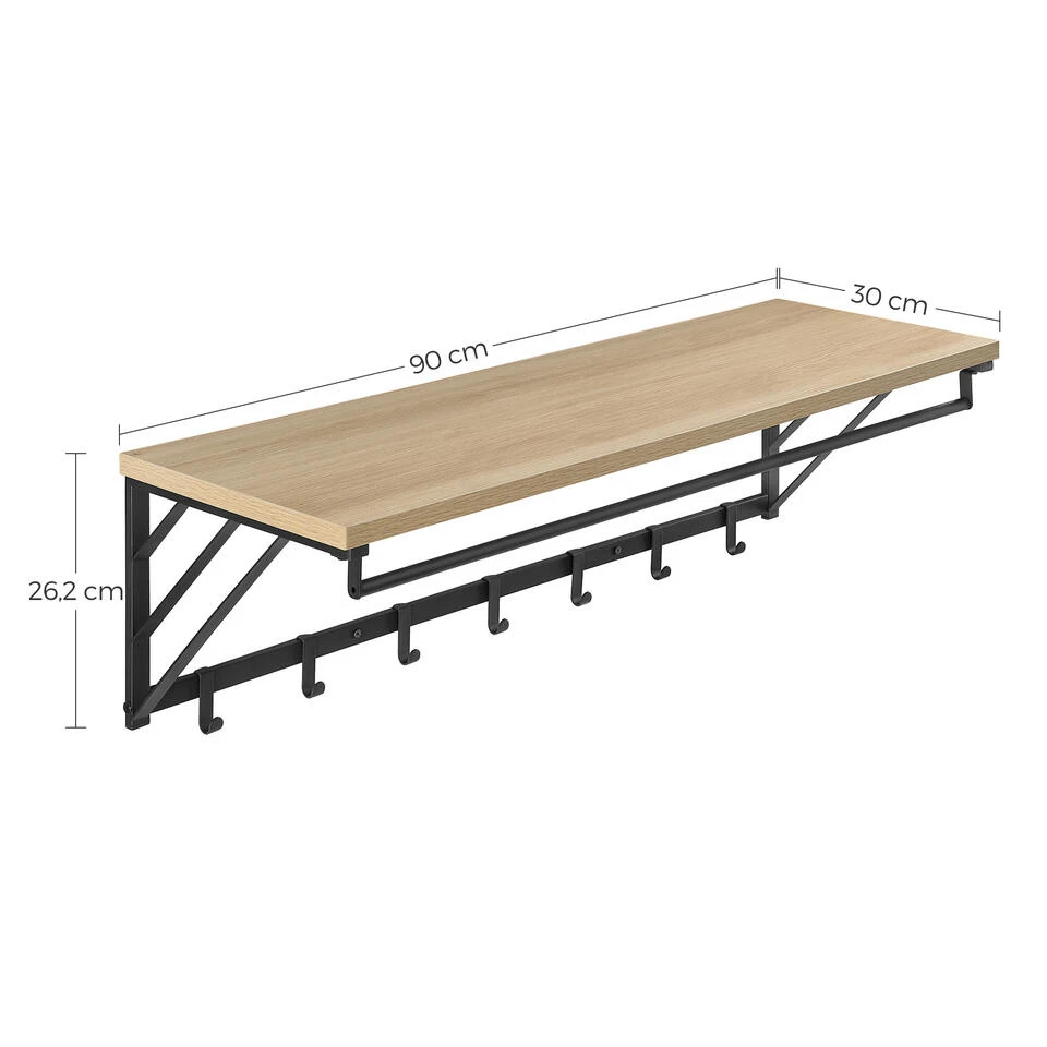 ACAZA Wandkapstok Met Plank En 7 Haken, Lichte Eik Kleur