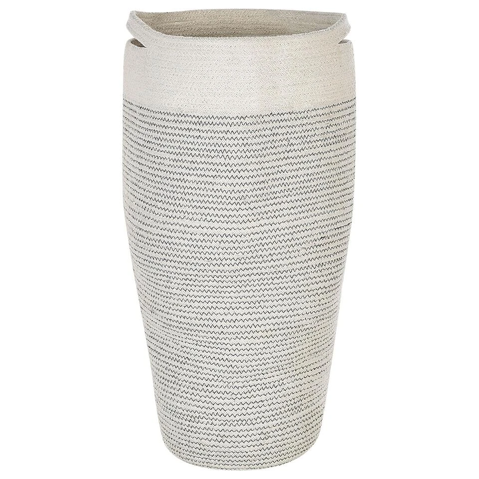 Gevlochten opbergmand. Ruim je accessoires op met deze hoge opbergmand. Zet hem in je woonkamer, slaapkamer of badkamer en gebruik hem om alles op te bergen wat je nodig hebt, of het nu boeken, speelgoed of wasgoed is. De mand is gemaakt van 100% katoen en is prachtig handgemaakt in wit. Ontworpen met handgrepen voor een handig gebruik.