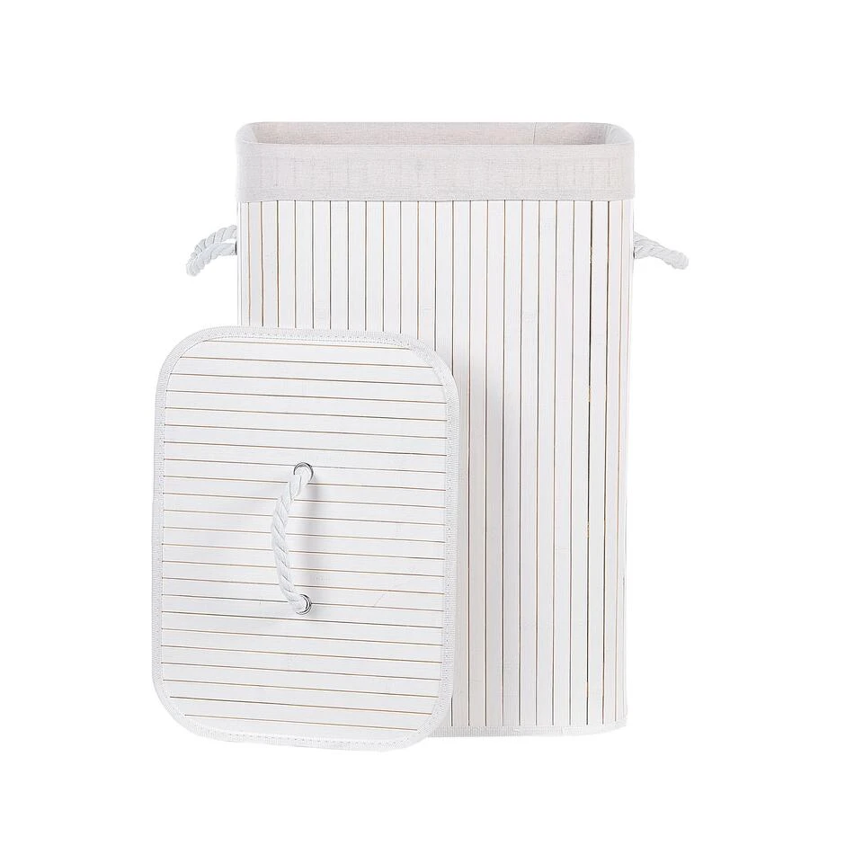 Opbergmand voor badkamer of woonkamer. Compact en praktisch – zo kan deze wasmand worden omschreven. Het is gemaakt van bamboehout en heeft een solide constructie en een eenvoudig maar esthetisch ontwerp. De binnenkant is opgevuld met uitneembare en wasbare stof voor hygiënisch gebruik, terwijl het deksel en de zijkanten van de mand extra handvatten hebben die het transport vergemakkelijken. Dankzij het ruime ontwerp kan de mand zowel voor de was als voor het opbergen van je accessoires worden gebruikt.