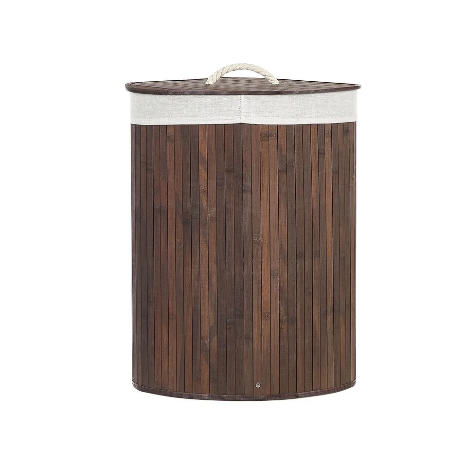Wasmand met verwijderbaar deksel. Deze ruime mand zal een grote hulp zijn om je ruimte georganiseerd en opgeruimd te houden. Hij is gemaakt van natuurlijk bamboe, heeft een deksel met handvat en is gestoffeerd met een verwijderbare bijpassende stof. Dankzij zijn vorm past de mand in de hoek van een kamer zonder tegelijkertijd veel ruimte in te nemen. Het zal goed functioneren als wasmand en als opslag voor je accessoires.