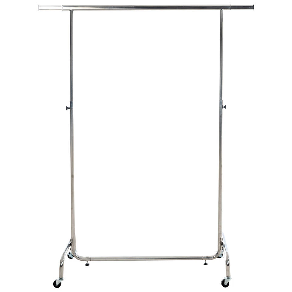 De zeer duurzame kledingrek Hospet heeft een stevige metalen constructie, van gegalvaniseerd metaal in zwart of geborsteld roestvrij staal, voor optimale prestaties en een lange levensduur. Voor extra flexibiliteit kunt u de hoogte van kledingrek Hospet in stappen aanpassen en kan de kledingstang indien nodig ook worden verlengd.