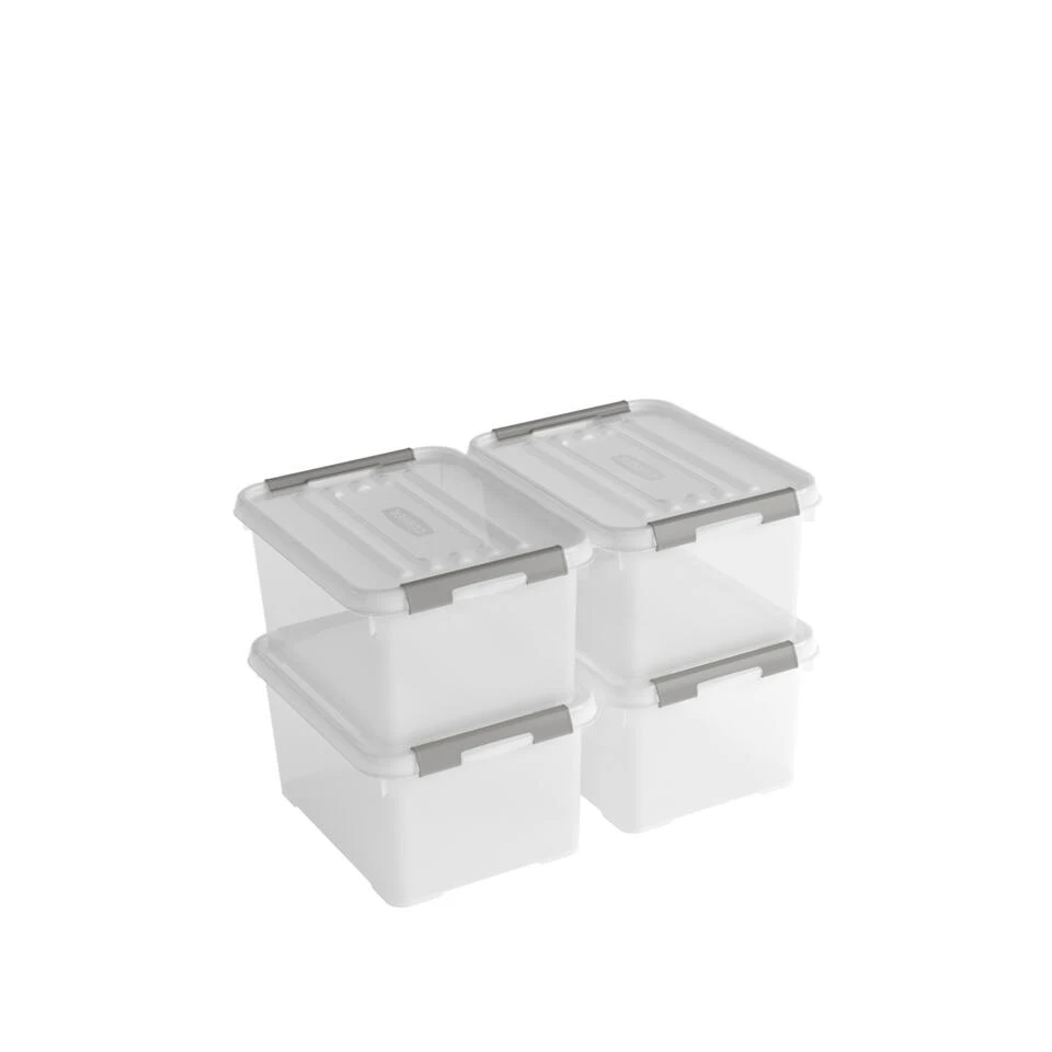 Curver Handy+ opbergbox – 15L – 4 stuks – Transparant met deksel