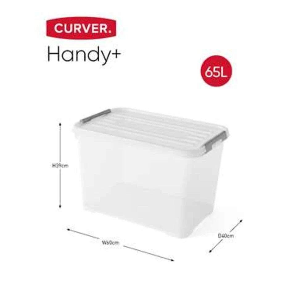 Curver Handy+ opbergbox – 65L – 3 stuks – Transparant met deksel