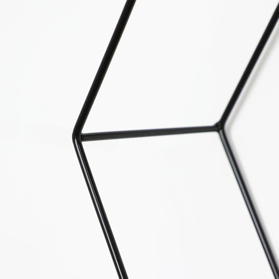 Op zoek naar een metalen wandrek om je interieur meer sfeer te geven? Wandrekken zijn dé trend van dit moment. Je kunt ze decoreren met jouw favoriete woonaccessoires. Dit hexagon wandrek heeft een zwart frame en bestaat uit drie zeshoeken voorzien van houten plankjes. De honingraat vorm maakt het rekje speels en eigentijds.