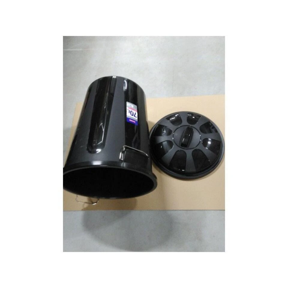 Afvalemmers/vuilnisemmers in de kleur zwart van 70 liter met deksel. Materiaal: kunststof. Afmetingen: ca. 47,5 x 52 x 67 cm. Ideaal voor in de keuken, slaapkamer of op kantoor.