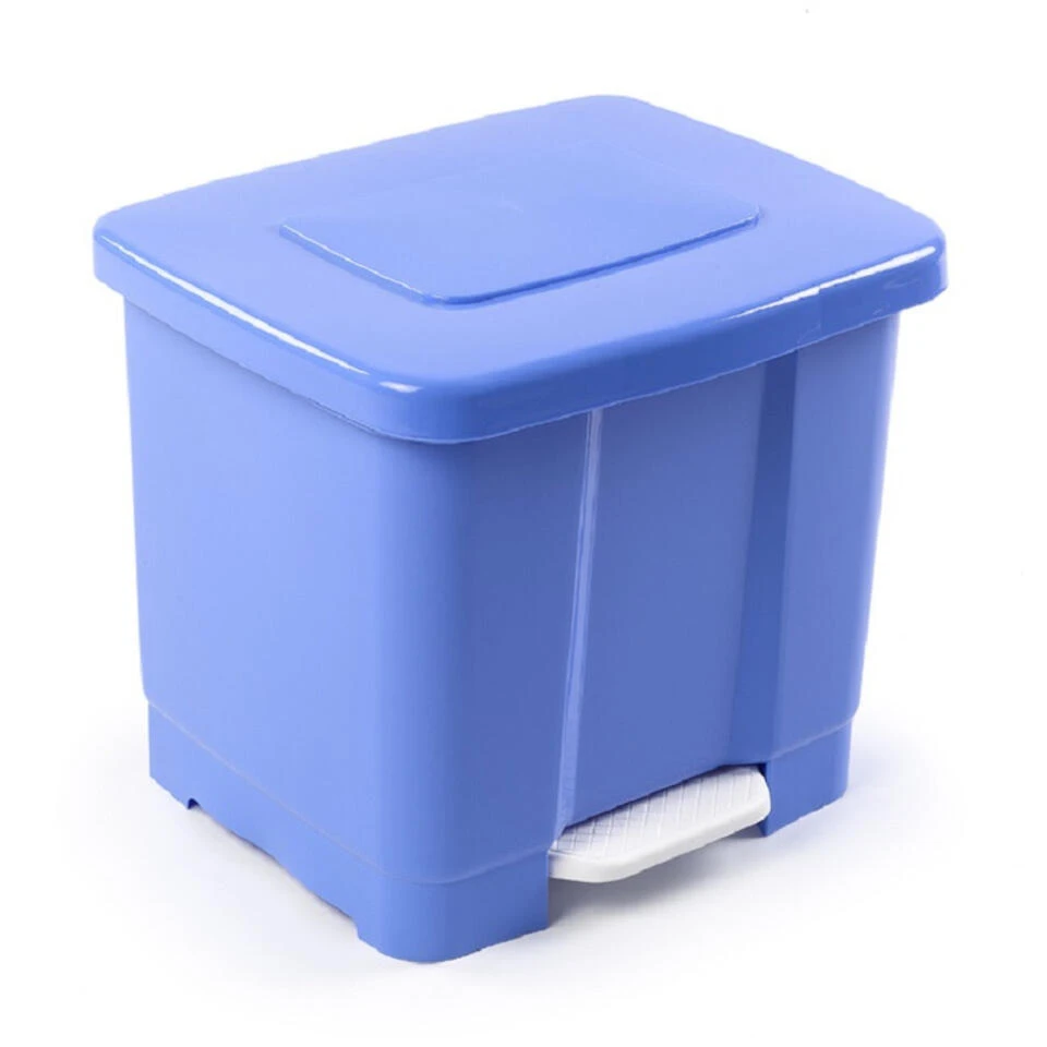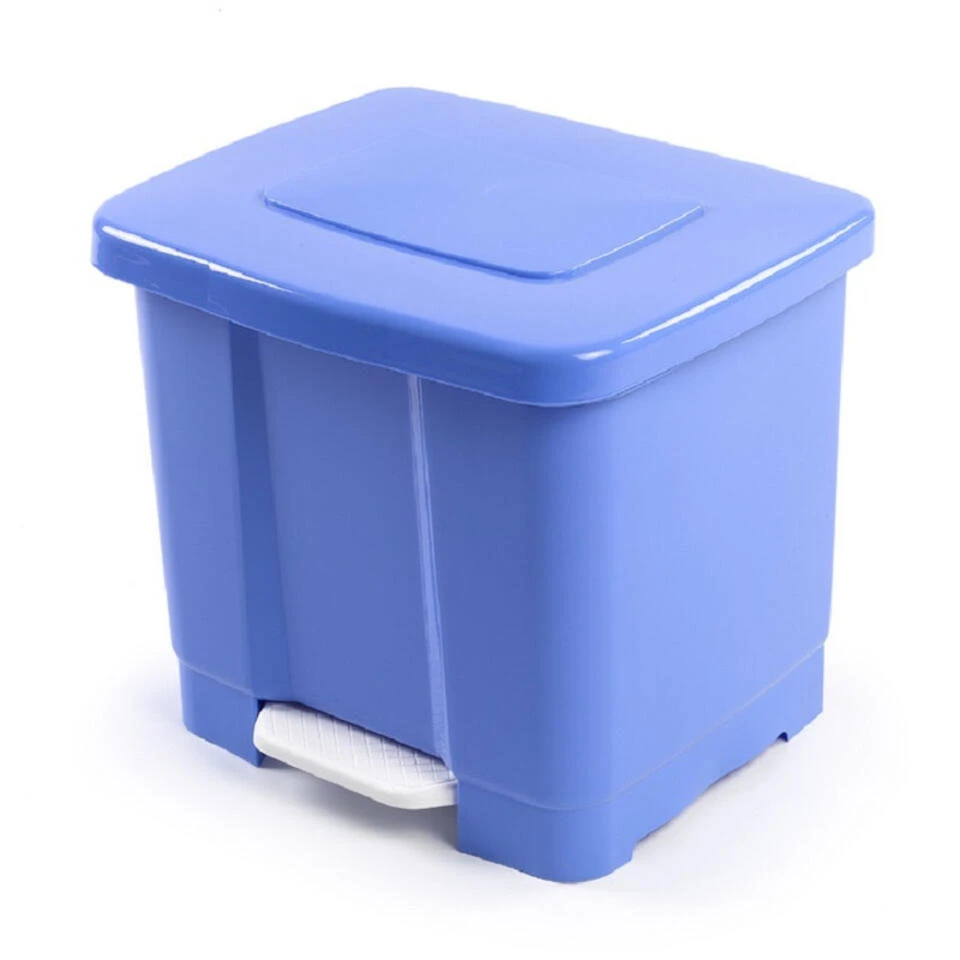 Dubbele afvalemmer/vuilnisemmer 35 liter met deksel en pedaal in het lichtblauw. Materiaal: kunststof. De afvalbak/vuilnisemmer kan 2 verschillende vuilniszakken herbergen. Afmetingen: ca. 43 x 38 x 38 cm. Ideaal voor in de keuken of op kantoor.