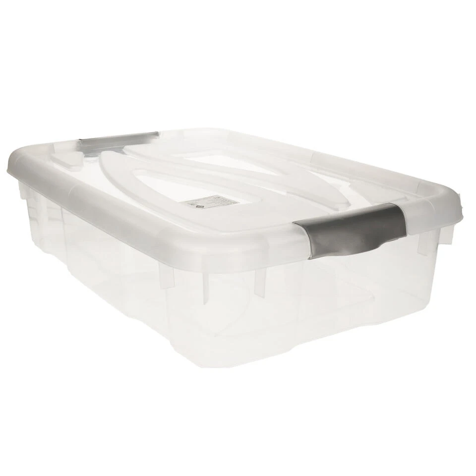 1x Stuks opberg boxen/opbergdozen transparant/grijs kunststof. Ideaal om al uw spullen geordend maar ook vochtvrij en stofvrij op te bergen. De box is voorzien van 2 grijze clipsluitingen en een transparante deksel. Stapelbare bewaarbakken voor al uw spullen, zoals bijvoorbeeld: gereedschap, diverse knutselspullen/hobbyspullen, boeken, tijdschriften of kaarten.