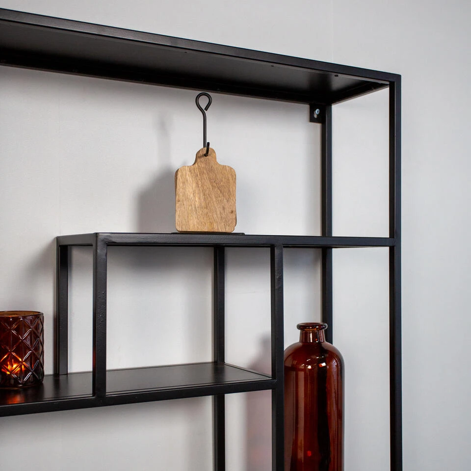 Dit stoere, zwarte wandrek is van alle markten thuis! Ideaal in de keuken, woonkamer of slaapkamer te gebruiken. Een wandrek is namelijk altijd een prachtige blikvanger, maar biedt ook opbergruimte of ruimte voor het tentoonstellen van je accessoires.