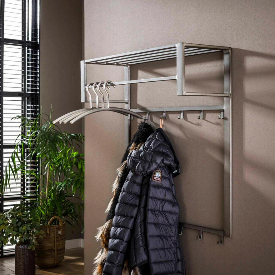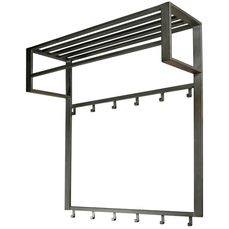 De industriële kapstok past dankzij zijn ontwerp perfect binnen een industriële, stoere of moderne inrichting. Hij is in zijn geheel gemaakt van gepoedercoat staal en heeft een grijze afwerking gekregen. Deze variant bestaat uit een hoedenplank met een open ontwerp, één roede en 2 rijen met 6 haakjes. Hierdoor is er genoeg ruimte voor verschillende jassen, sjaals, hoeden en andere accessoires! Industriële kapstok wordt compleet geleverd en is gemakkelijk te bevestigen aan de wand door middel van twee bevestigingsogen. Verkrijgbaar in verschillende varianten.