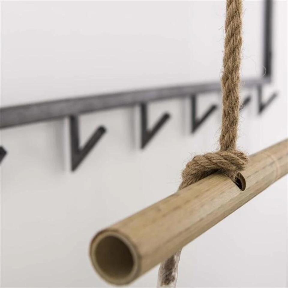 Industriële kapstok Bobby is gemaakt van bamboe hout en metaal. De lichte kleur van de bamboe en de oud-zilver kleur van het metaal zorgt voor een geweldig effect. Doordat Bobby gemaakt is van bamboe kunnen er onregelmatigheden voorkomen in het hout. Dit maakt elke Bobby wel uniek.