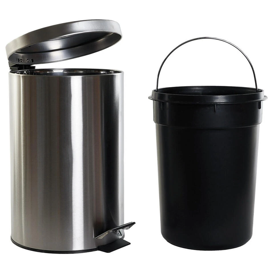 Vuilnisbak/pedaalemmer met losse emmer zilver. Inhoud: ca. 12 liter. Afmeting: ca. 25 x 33 x 40 cm. Materiaal: RVS.