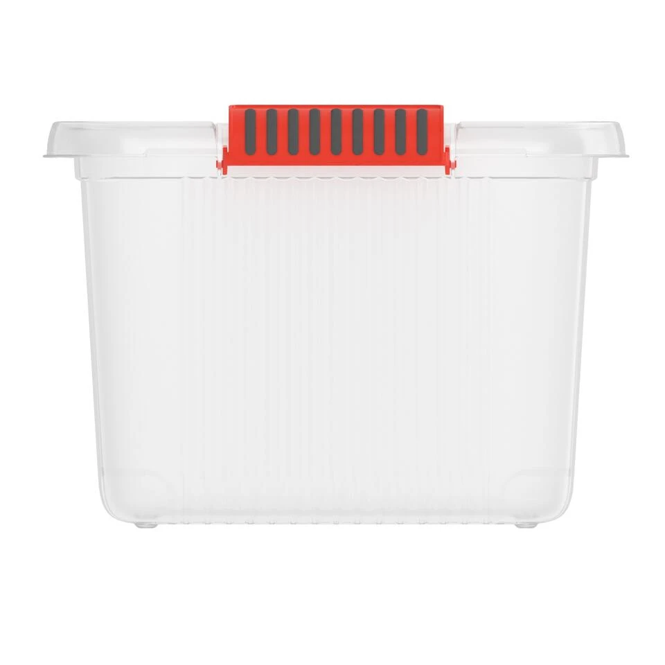 Transparante opbergbox Latch is ideaal om spulletjes netjes en overzichtelijk op te bergen. De box is namelijk semi transparant waardoor je toch ziet wat er in zit. Het deksel bevestig je stevig op de box door de rode clips vast te klikken.