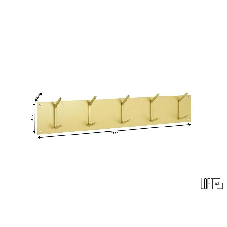 Voor een opgeruimde gang is een kapstok essentieel. De wandkapstok is hierbij het meest gebruikte item. Door je jas op te hangen aan de wand, blijft de vloer vrij en behoud je meer ruimte! De LOFT42 Factory is gemaakt van sterk en robuust goud metaal en heeft een strak design. De grote haken bieden 10 ophang mogelijkheden. Hierdoor heb je extra veel ruimte om alle jassen van jou en je bezoek op te hangen.
