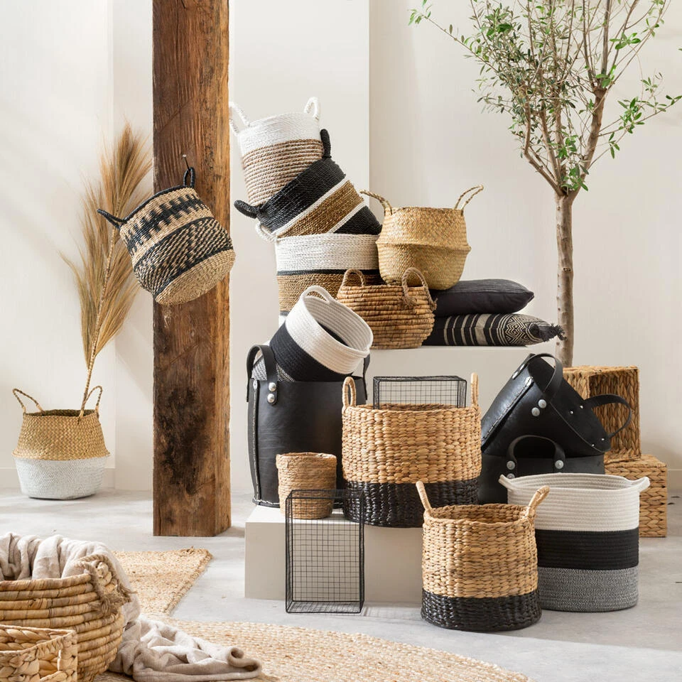 Mand Bologna – Naturel/wit/zwart – 40xØ38 Cm