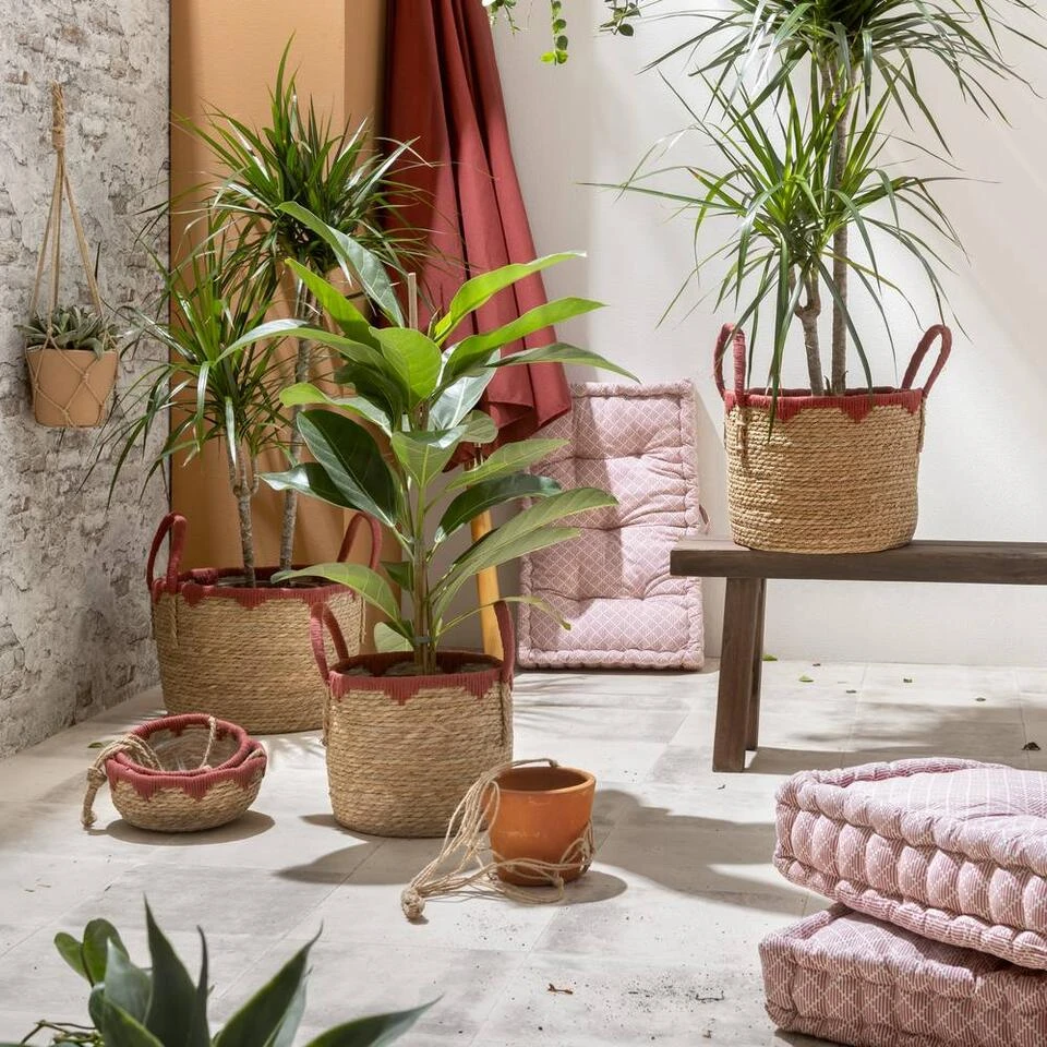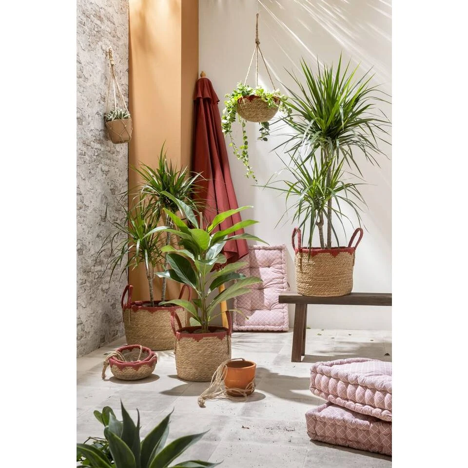 Mand Dille is naturel en rood van kleur en heeft 2 hengels. Door het geweven patroon, is dit een echte eye-catcher voor elk interieur! Berg er spullen in op of decoreer deze leuk met een plaid. Op die manier geef je je interieur net dat beetje extra. De decoratieve mand heeft een afmeting van 38xØ29 cm en is gemaakt van zeegras. Ook verkrijgbaar in de maten 42xØ34 cm en 45xØ40 cm.