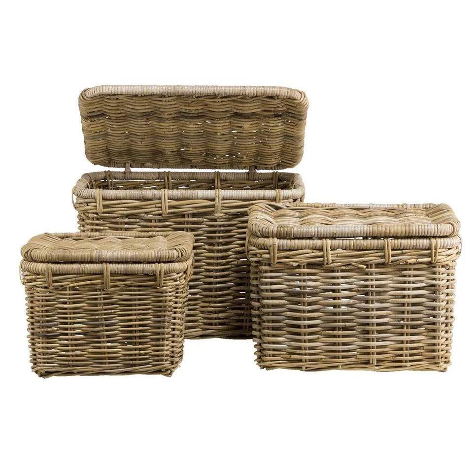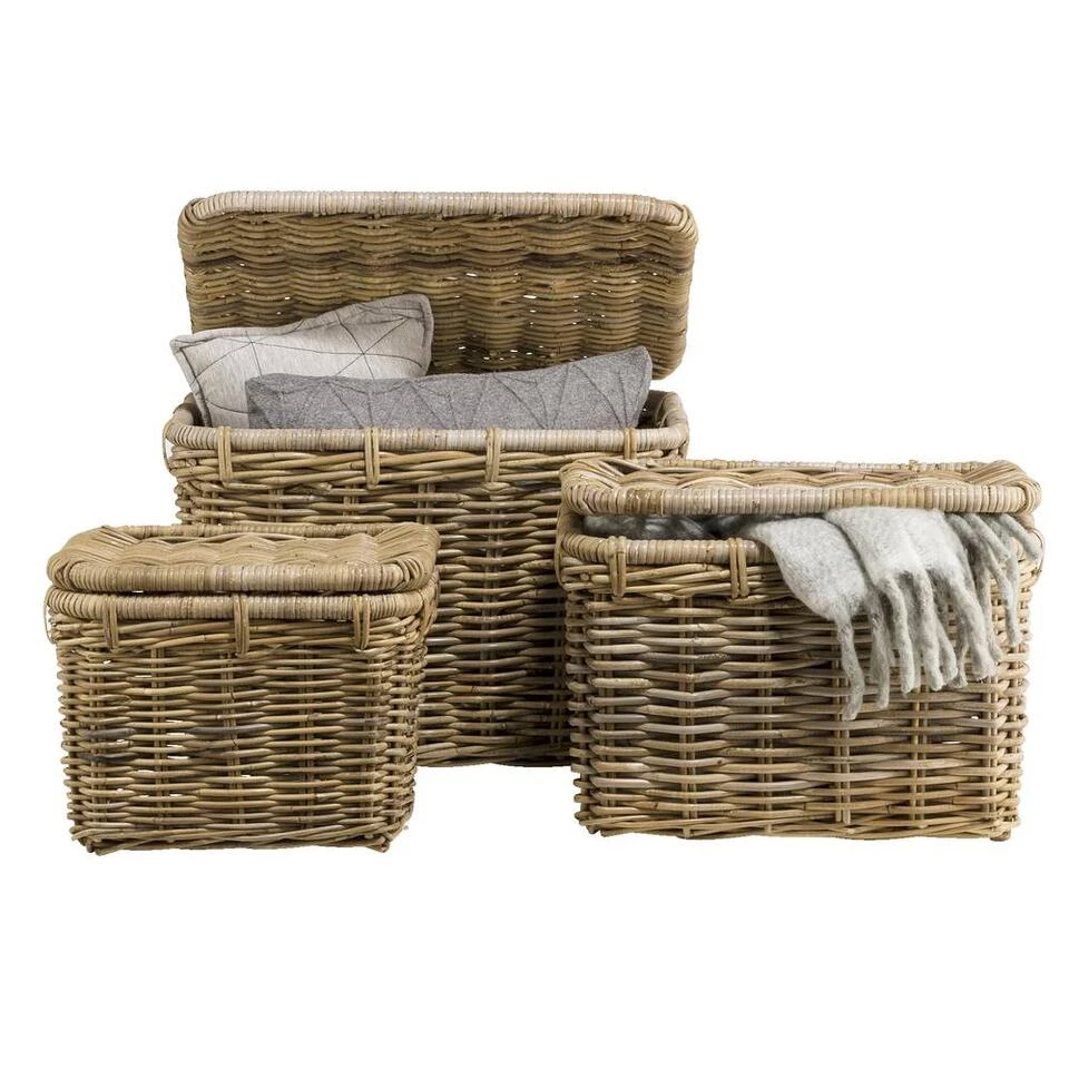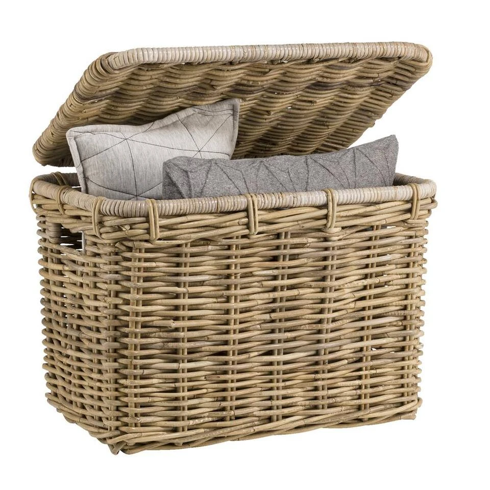 Bewaar al je waardevolle spullen in deze praktische rieten mand Meike. De vierkante mand is gemaakt van rotan in een grijsbruine kleur. Deze mand met deksel is voorzien van twee handgrepen en heeft een afmeting van 55x40x40 cm.