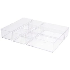 Een lade organizer met 6 vakken voor uw make-up, haaraccessoires etc. De organizer past in bijna alle lades, zodat u geen losse spullen meer heeft liggen! Totale afmeting: 30 x 22,5 x 5 cm. Afmeting vakken: 3x ca. 7,5 x 7,5 cm, 1x ca. 15 x 7,5 cm, 1x ca. 22,5 x 7,5 cm en 1x ca. 15 x 15 cm. Materiaal: acryl.