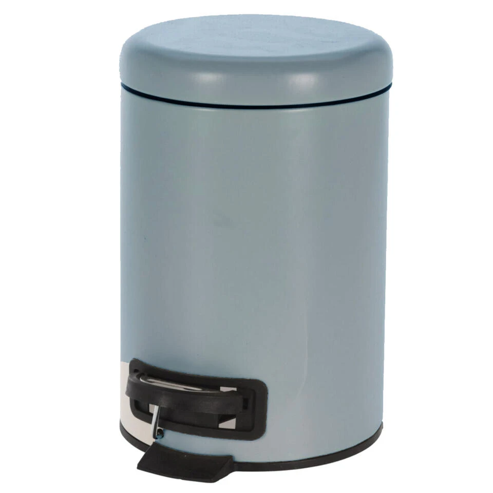 Grijs blauwe vuilnisbak/pedaalemmer 3 liter. Een grijs blauwe vuilnisbak/vuilnisemmer/pedaalemmer/prullenbak, met pedaal opening/sluiting. De vuilnisbak heeft een kunststof verwijderbare binnen emmer met handvat. Afmeting: ca. D17 x H25 cm. Materiaal: metaal/kunststof.