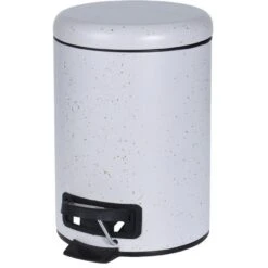 Merkloos Pedaalemmer – Wit Met Gouden Spikkels – Rond – 3 L – 17 X 25 Cm