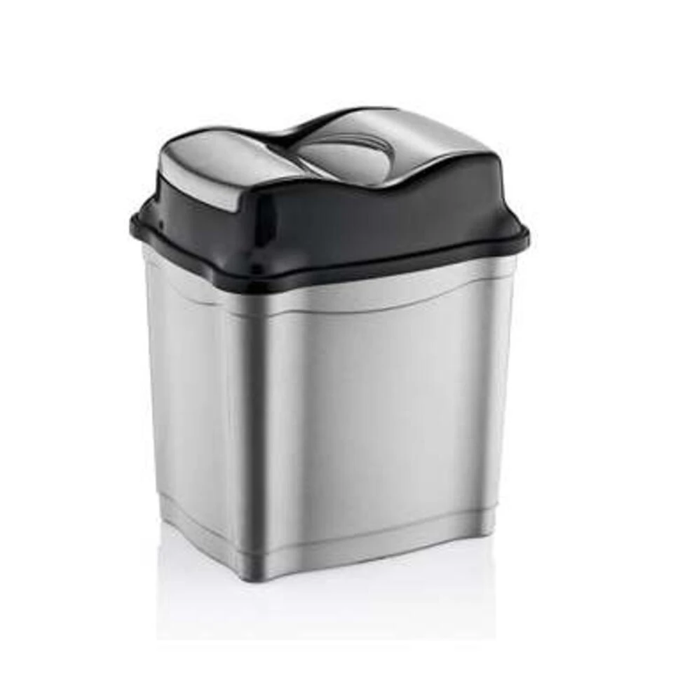Een zilver/zwarte vuilnisbak met afneembare deksel in de kleur zilver/zwart. De vuilnisemmer heeft een inhoud van 50 liter en een ge?ntegreerde bak. BPA vrij. Afmeting ca: L40.5 x B33 x H63 cm. Materiaal: hoogwaardig kunststof. Een ideale afvalemmer voor de keuken/kantoor.