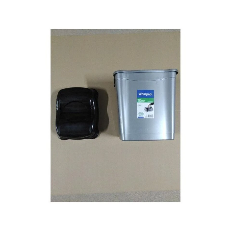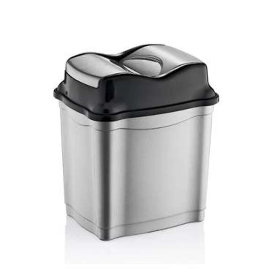 Een zilver/zwarte vuilnisbak met afneembare deksel in de kleur zilver/zwart. De vuilnisemmer heeft een inhoud van 9 liter en een ge?ntegreerde bak. Afmeting ca: L19,2 x B26 x H32 cm BPA vrij. Materiaal: hoogwaardig kunststof. Een ideale afvalemmer voor de keuken/kantoor.