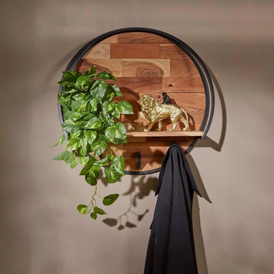 Heb jij een stoer en industrieel interieur? En ben je op zoek naar een mooi wandschap voor in de hal? Kijk dan eens naar deze Millie. Millie is verkrijgbaar in drie formaten (30, 40 of 50 cm). zo is er altijd wel een variant dat voldoet aan jouw woonwensen. Millie is gemaakt van massief acaciahout en is ruw afgewerkt. Het frame is van gemaakt van gepoedercoat metaal. Deze is ruw afgewerkt door de fabriek wat dit wandschap een extra stoere look geeft. Het wandschap is voorzien van twee haken om bijvoorbeeld sleutels of een jas op te hangen. Het plankje kun je leuk decoreren met een plantje of geurkaarsen. Het schapje wordt door middel van 2 bevestigingspunten aan de muur opgehangen. Bevestigingsmateriaal wordt niet meegeleverd omdat iedere muur vraagt om ander bevestigingsmateriaal.