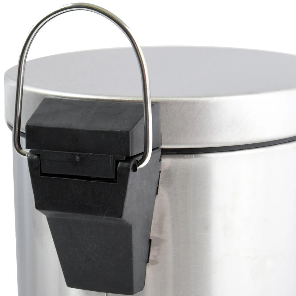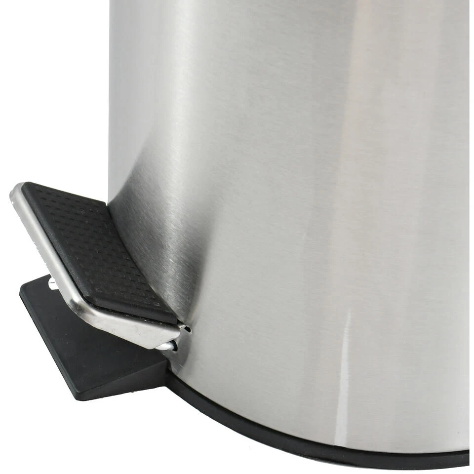 Pedaalemmer voor badkamer en toilet, klein model met inhoud 3 liter, kleur glans zilver. Deze prullenbak is gemaakt van rvs(metaal) en heeft een formaat van ca. L16 x H25 cm. Deze kleine pedaalemmers hebben een uitneembare binnenbak. De deksel heeft dezelfde kleur. Robuust en makkelijk te legen. Afvalemmers, pedaalemmers en prullenbakken.