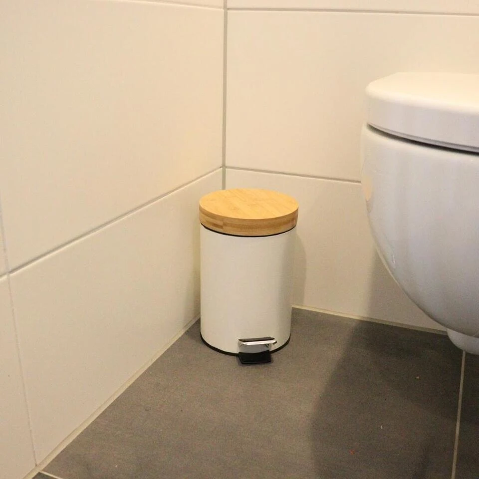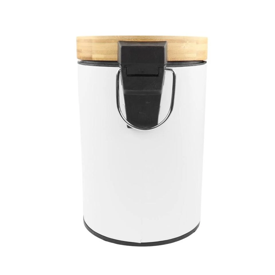 De prullenbak van Orange85 is geschikt voor 3 L aan afval. Het is een pedaalemmer en wordt niet geleverd met zakken. De prullenbak is rond van vorm en is wit van kleur. De pedaalemmer is gemaakt van metaal en bamboe.
