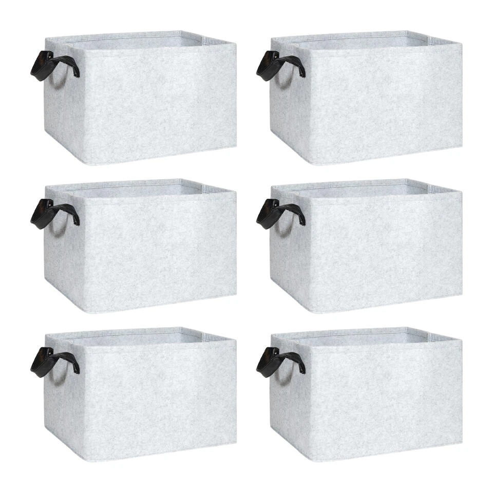 Wil jij ook meer rust en overzicht in je huis? Dan is het goed om met opbergmanden te gaan werken. In organizers kun je losse spullen netjes opruimen. Niet alleen ziet dat er mooier en overzichtelijker uit, ook kun je dingen zo veel gemakkelijker terugvinden. Kun jij nog wel wat extra opbergers gebruiken in je huis? Dan is deze set met zes vilten opbergmanden een goede keuze. De vilten opbergdozen zijn lichtgewicht en hebben handige handvaten. Zo ruim je dingen eenvoudig op, maar kun je de opbergmand ook weer gemakkelijk tevoorschijn halen of verplaatsen.