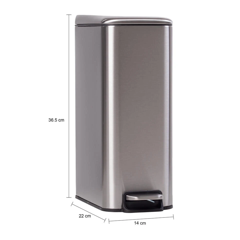 Een prullenbak is misschien niet de leukste toevoeging aan jouw interieur, maar het is wel nodig. Of je de afvalbak nou in de keuken gebruikt voor het GFT afval of dat je de pedaalemmer op je thuiskantoor zet als papierbak, een vuilnisbakje komt altijd van pas. Gelukkig heeft deze pedaalemmer van QUVIO een strak design, waardoor de afvalbak goed in je interieur in te passen is. De rechthoekige vorm oogt modern en de zilveren kleur is tijdloos. Hierdoor pas je de pedaalemmer gemakkelijk in jouw interieur in.