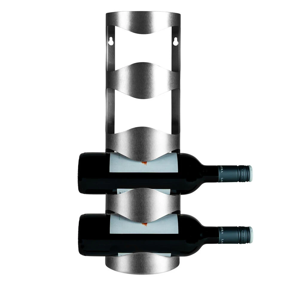 Het ontwerp van de wijnfleshouder is elegant en simpel. Het wijnrek van aluminium heeft een zilveren kleur en elegante openingen voor de flessen. Je schuift een wijnfles makkelijk in de opening. Dankzij de vorm van het aluminium ligt een fles stevig en kan deze niet uit het rek vallen.