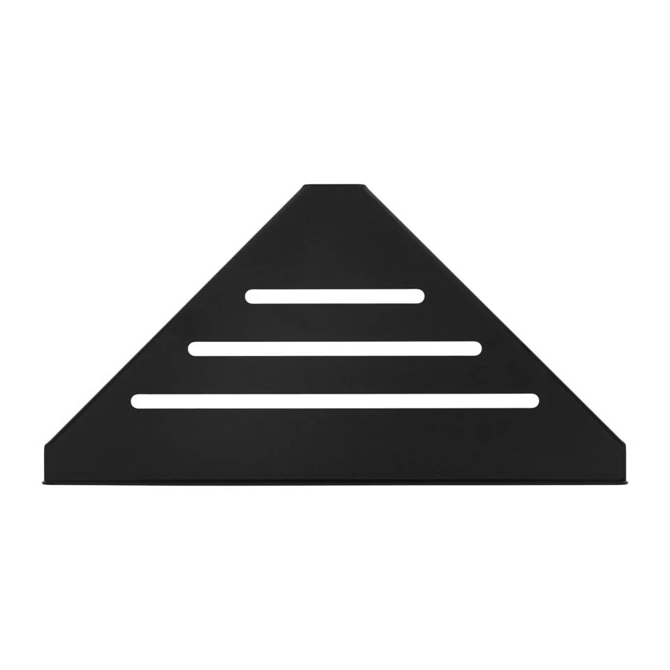 De metalen wandplank voor de hoek heeft een strak ontwerp. De wandplank is zwart van kleur, gemaakt van metaal en heeft enkele gleuven. De gleuven zorgen ervoor dat er geen water op de plank blijft staan wanneer je deze in de badkamer gebruikt. Het strakke ontwerp past goed bij een industrieel of modern interieur.