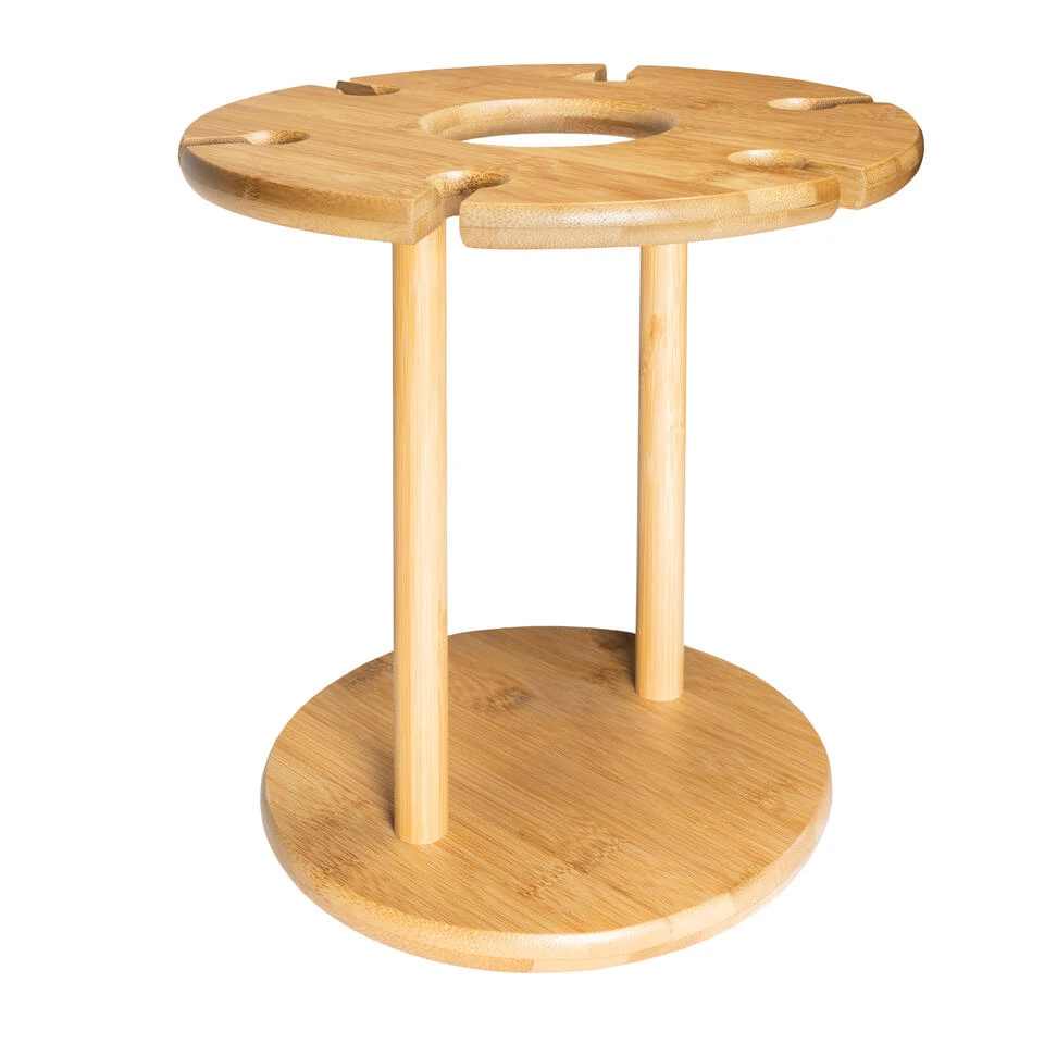 Dit ronde wijnrekje van QUVIO is een leuk item voor elke wijnliefhebber, van gelegenheidsdrinker tot sommelier. Het rek is gemaakt van hout (bamboe) en biedt plaats aan 1 fles wijn en 6 wijnglazen. Leuk om te gebruiken tijdens een etentje of verjaardag thuis, al misstaat het tafelwijnrekje ook zeker niet op een bruiloft, jubileum of ander bijzonder feestje. Ook als cadeau doet dit artikel het goed.