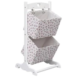 Het frame is gemaakt van hoogwaardig MDF en paulowniahouten en biedt sterke en duurzame ondersteuning. De 2 manden zijn groot en diep en bieden veel ruimte aan je spullen. De mand is verwijderbaar en kan plat worden opgevouwen voor eenvoudig opbergen wanneer hij niet in gebruik is.