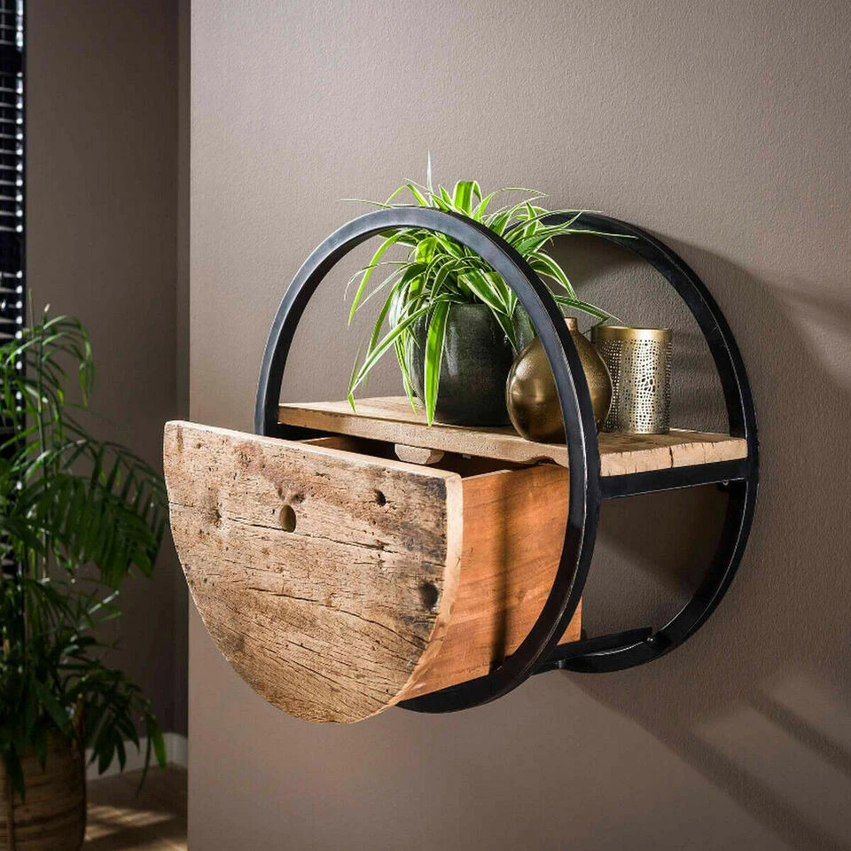 Maak uw lege wand helemaal af met het leuke Hardy wandschap uit de collectie van Fraaai! Dit mooie wandschap is voorzien van een handige lade, waardoor kleine spulletjes netjes kunnen worden opgeborgen en hij tevens een unieke uitstraling krijgt. Dit item bestaat uit een rond metalen frame met een zwarte geschuurde uitstraling, met hiertussen het robuuste hardhouten schapje en de unieke lade. Deze lade is voorzien van een ronde uitsparing, zodat hij gemakkelijk te openen is. Decoreer het schapje met leuke plantjes, beeldjes, vaasjes of kaarsjes voor een persoonlijke finishing touch in uw interieur. Combineer wandschap Hardy 50 cm ook met de andere twee formaten en maak de set compleet. Dit wandschap is uitgevoerd in robuust hardhout, een natuurproduct, met een grove en oneffen structuur. Hierdoor kunnen er onregelmatigheden in het hout voorkomen; dit getuigt van karakter en uniekheid van het product.